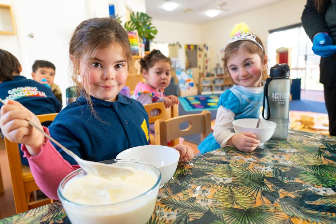 Thanks to the in-house chef at our Queanbeyan child care centre, your child can expect healthy, nutritious, and yummy meals. We offer a rotating seasonal menu, providing breakfast, morning tea, lunch, afternoon tea, and a late snack freshly made daily. We cater to all dietary requirements, including halal.